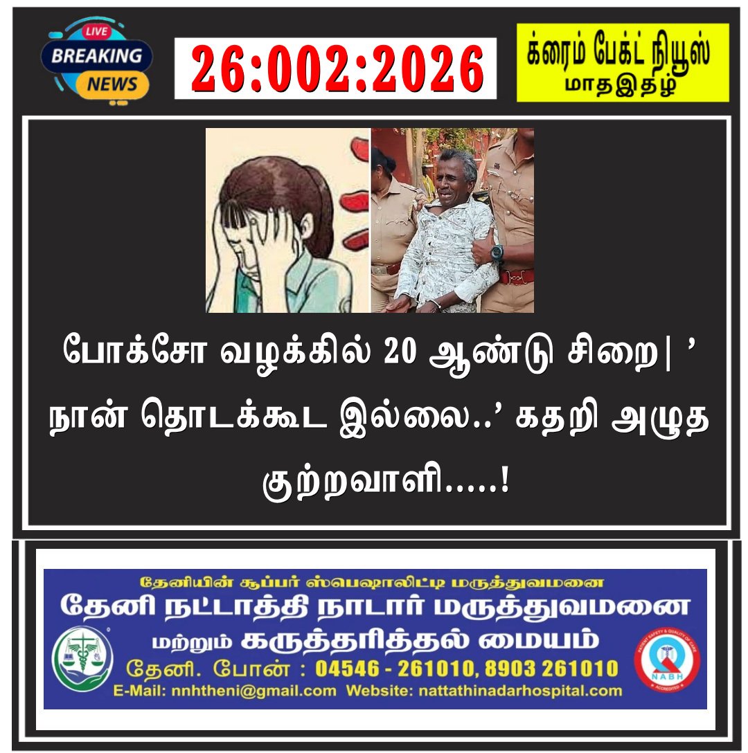 புதுக்கோட்டை மாவட்டத்தில் சிறுமிக்கு பாலியல் தொல்லை கொடுத்ததாக குற்றம் சாட்டப்பட்ட பன்னீர்செல்வம் 20 ஆண்டுகள் சிறை தண்டனை பெற்றார். நீதிமன்றம் அவருக்கு பத்தாயிரம் ரூபாய் அபராதமும், சிறுமிக்கு ஐந்து லட்சம் ரூபாய் இழப்பீடும் வழங்க உத்தரவிட்டது. தண்டனை அறிவிக்கப்பட்டபோது, பன்னீர்செல்வம் தனது குற்றத்தை மறுத்து கதறி அழுதார்.