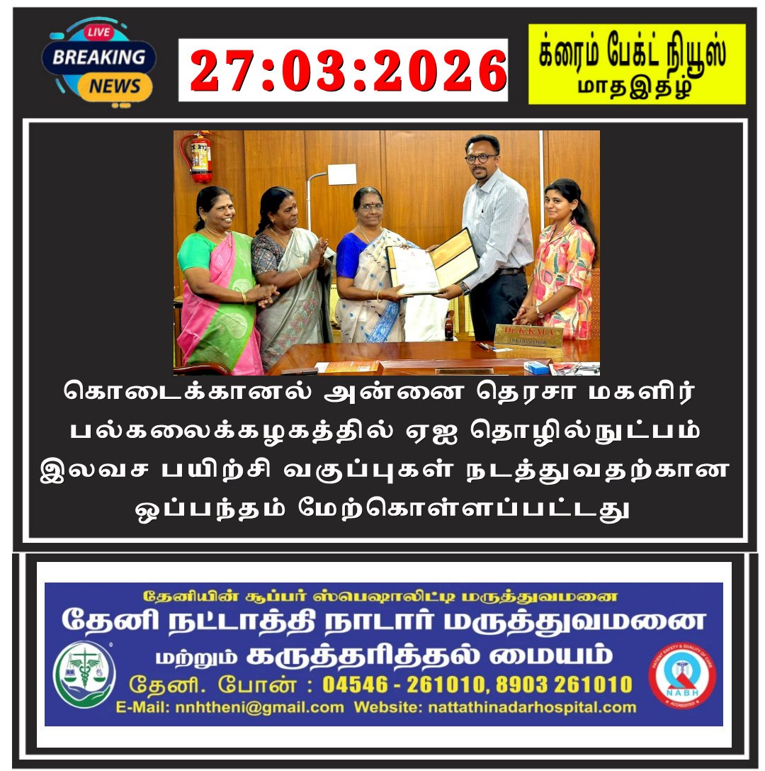 கொடைக்கானல் அன்னை தெரசா பல்கலைக்கழகத்தில் சுமார் ஆயிரத்திற்கு மேற்பட்ட மாணவிகள் பயின்று வருகின்றார்கள் இந்நிலையில் தொழில்நுட்ப இலவச வகுப்புகள் பயில்வதற்காக B L R என்ற தனியார் அமைப்புடன் இந்த ஒப்பந்தம் கையெழுத்தானது இதன் மூலம் ஆசிரியர்கள் இல்லாத நேரத்தில் மாணவிகள் பாடங்களை தெளிவாக புரிந்து கொள்ளும் வகையிலும் எளிய முறையில் கல்வி பயிலவும் A I மூலம் மாணவிகள் சிறந்த முறையில் கற்பித்தல் அனுபவங்களை பெற முடியும் என்று இதன் மூலம் எடுத்துரைக்கப்பட்டது