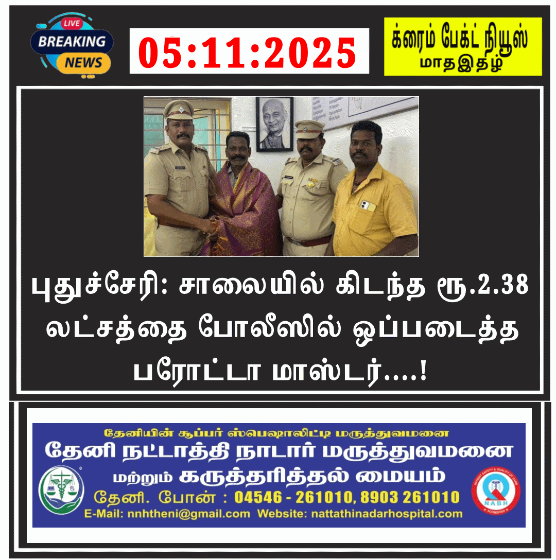 திண்டுக்கல் ரயில் நிலையத்திற்கு வந்தமேற்குவங்க மாநிலம் புருலியாவிலிருந்து, திருநெல்வேலி செல்லும் புருலியா அதிவிரைவு ரயிலில்திண்டுக்கல் ரயில்வே காவல் நிலைய ஆய்வாளர் தூய மணி வெள்ளைச்சாமி உத்தரவின் பேரில் சிறப்பு சார்பு ஆய்வாளர் மணிகண்டன் மற்றும் காவலர்கள் திடீர் சோதனை மேற்கொண்ட போது…