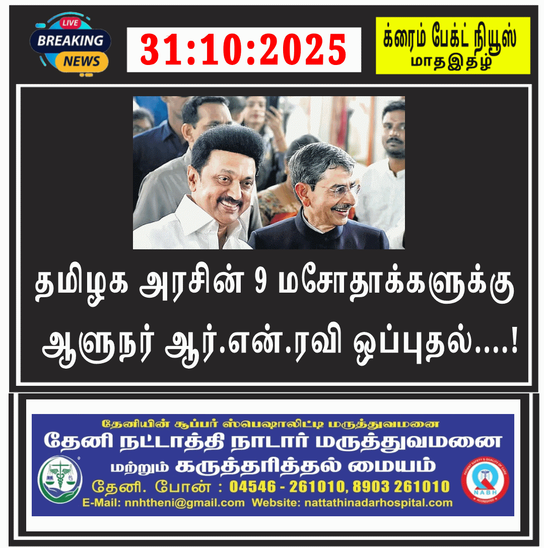 தமிழக அரசின் 9 மசோதாக்களுக்குஆளுநர் ஆர்.என்.ரவி ஒப்புதல்….!
